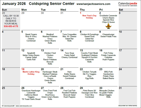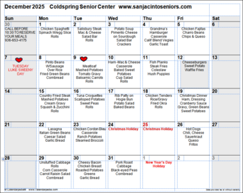 Every weekday at noon (except holidays) - Lunch at Senior Center SJC - RSVP by 10:30 am