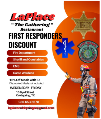 Every Friday - Discount for 1st Responders at LaPlace Restaurant, Coldspring