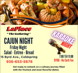 14 - 5:00 -8:00 pm - Cajun Night with Karaoke at LaPlace the Gathering Restaurant,